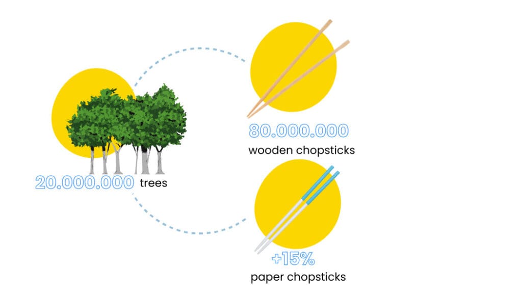 As a utensil, chopsticks are a staple for many of our favourite cuisines. From sushi and dumplings to bowls of noodles, their use is widespread. Today, paper chopsticks are emerging as a sustainable solution within the wider shift toward disposable paper-based foodservice products. Specifically it is estimated 80 billion disposable chopsticks are used every year.